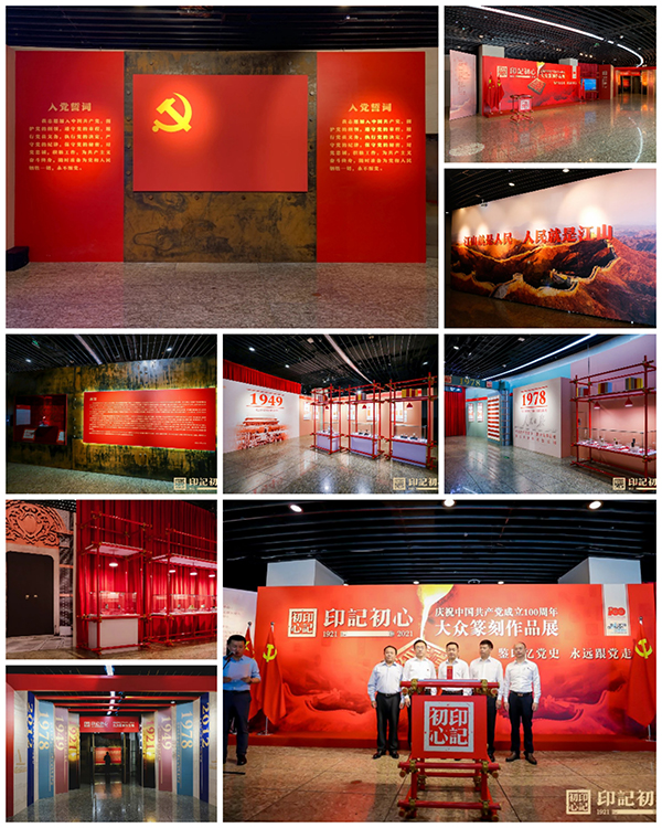 近年來,大眾篆刻普及推廣取得了可喜的成果,推動了篆刻藝術走向大眾,使越來越多的人喜愛上了篆刻藝術,弘揚中國印文化正在逐漸成為新的社會風尚。大眾篆刻志愿者們以篆刻這種古老而新穎的藝術形式,獨具特色、提綱挈領地展示中國共產黨的百年歷程,幫助參觀者從展覽中感悟中國共產黨篳路藍縷、披荊斬棘、艱苦創(chuàng)業(yè)、砥礪前行的奮斗精神、崇高使命和輝煌成就,激勵大家在中國特色社會主義新時代,不忘初心、牢記使命、永遠奮斗,為中華民族偉大復興做出新的更大的貢獻。